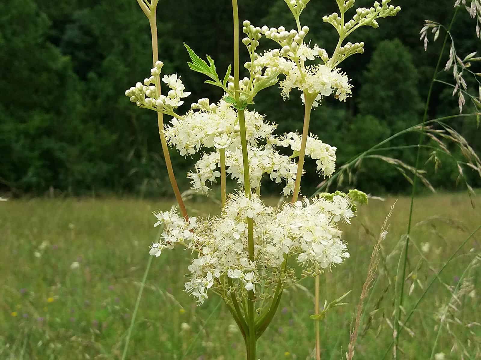 . Das Wasser mit dem Zucker aufkochen bis sich der Zucker gelöst hat die Zitronensäure zufügen. 1 Teelöffel 2-3 Gramm Mädesüßkraut oder 12 Teelöffel Blüten mit 150 Milliliter siedendem Wasser übergießen und 7 Minuten ziehen lassen. Bachforelle mit Wildkräutersalat Die Bachforellen werden einfach gebraten dazu gibts feine Wildkräuter wie Mädesüß Kresse und Melisse und fertig ist.